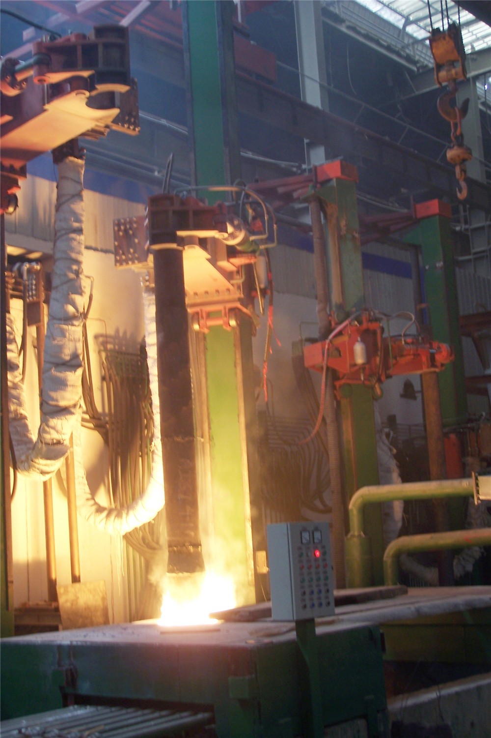 電渣熔鑄件的原料是電極棒(自耗電極),在熔鑄過程中電極棒被通過電流的渣池加熱并逐漸熔化掉,金屬熔滴通過渣液清洗后,在水冷結(jié)晶器中(金屬模具)結(jié)晶成重熔鑄件。由于渣液的去夾雜作用和良好的結(jié)晶條件,電渣熔鑄材料有良好的純凈度,鑄態(tài)組織細(xì)致均勻,無白點及偏析,硫含量極低,夾雜物細(xì)小彌散等優(yōu)良性能。